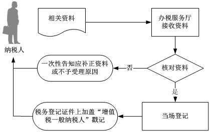 。1)辦稅服務(wù)廳接收資料,核對(duì)資料是否齊全、是否符合法定形式、填寫(xiě)內(nèi)容是否完整,符合的錄入相關(guān)信息,并在稅務(wù)登記證件上加蓋“增值稅一般納稅人”戳記。不符合的當(dāng)場(chǎng)一次性提示應(yīng)補(bǔ)正資料或不予受理原因。